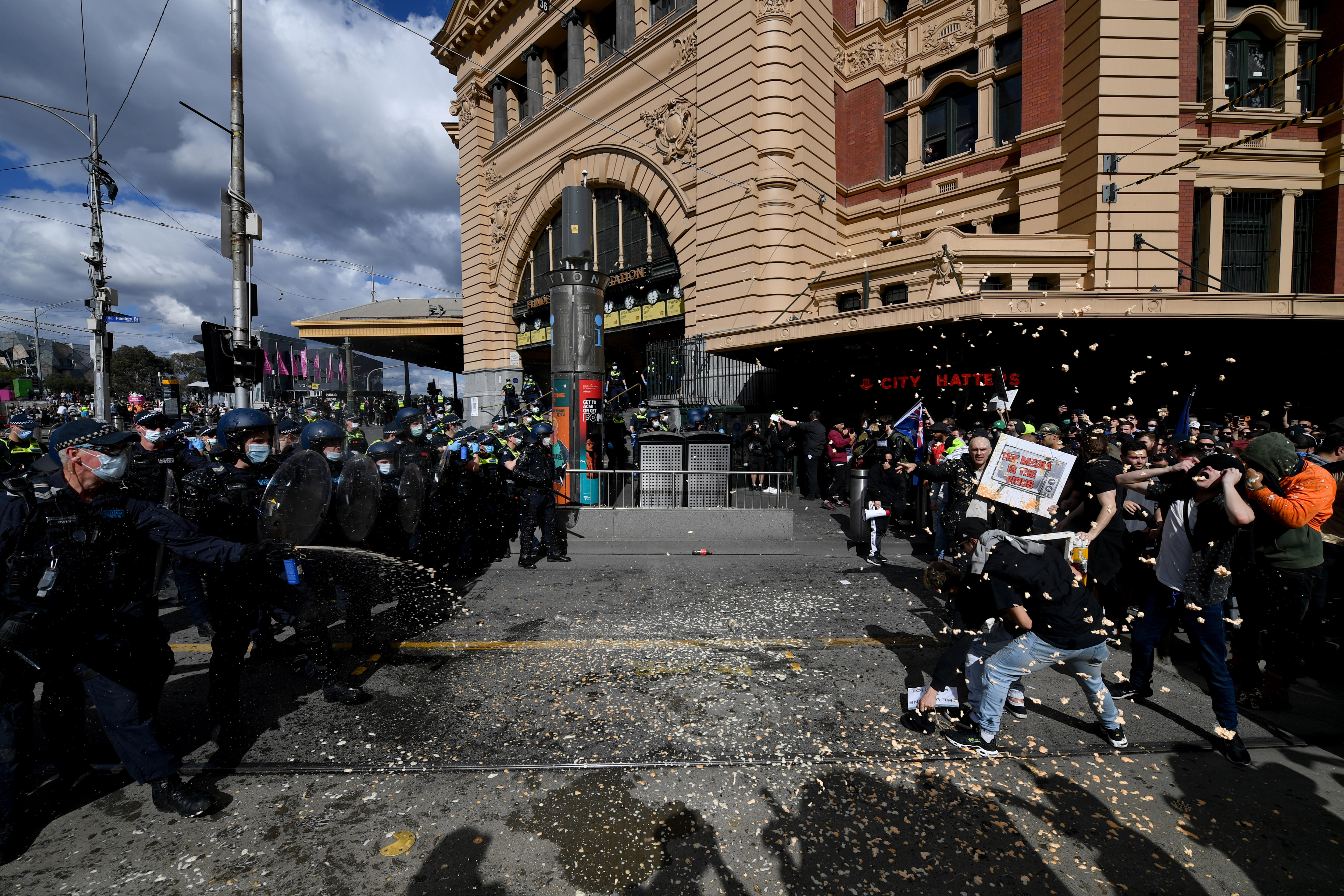 By AFP Saturday 18 Sep 2021 1028 AM. There were minor scuffles as. Officers were called to Flinders.